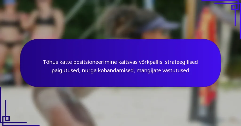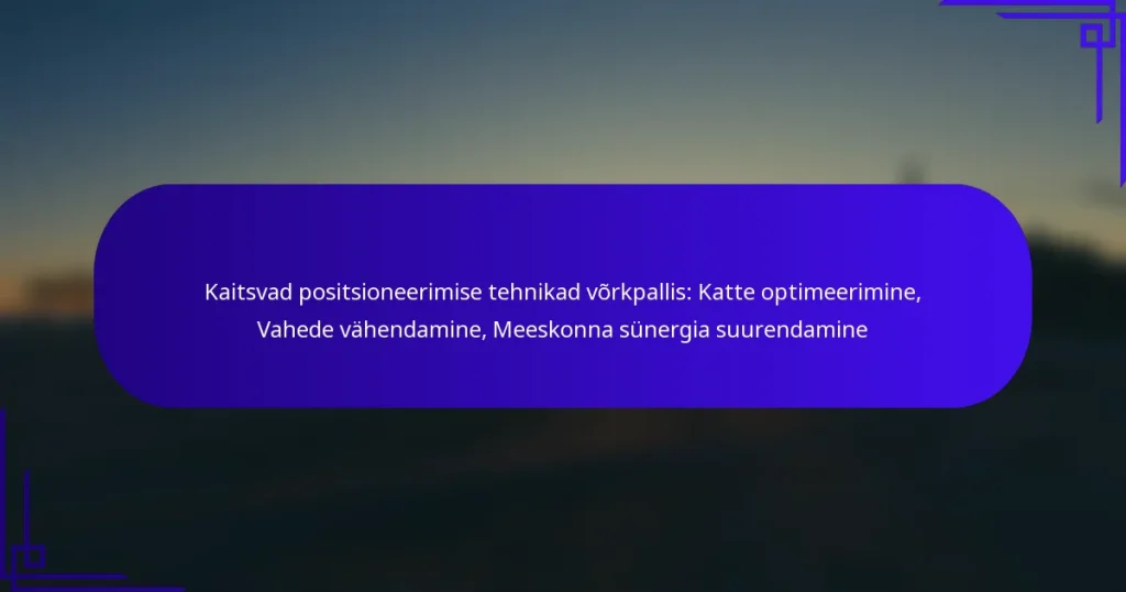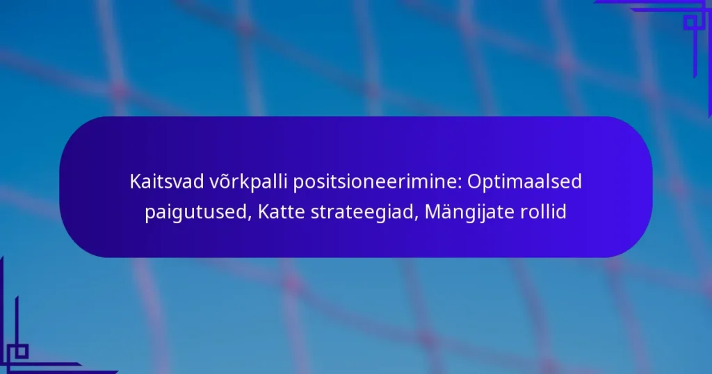 Kaitsvat võrkpalli mängimine nõuab mängijatelt oluliste positsioneerimise tehnikate omandamist, et tõhusalt katta väljakut ja reageerida vastaste rünnakutele. Peamised strateegiad hõlmavad madala kehahoiaku säilitamist, meeskonnakaaslastega joondumist ja kiirete liikumisteks valmistumist. Keskendudes harjutustele, jalgade tööle ja suhtlemisele, saavad mängijad parandada oma võimet ennustada ja reageerida mängude ajal.