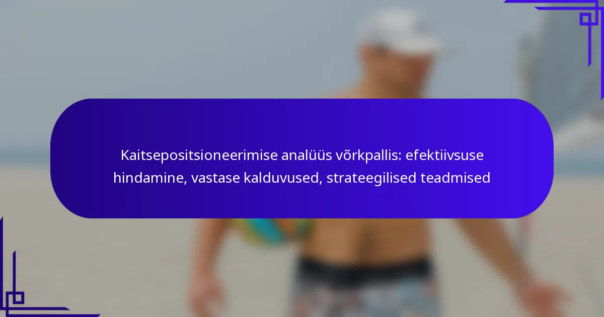 Kaitsepositsioneerimise analüüs võrkpallis viitab mängijate paigutuse süsteemsele hindamisele väljakul, et optimeerida kaitse efektiivsust vastaste vastu. See analüüs on ülioluline vastaste kalduvuste ennustamiseks ja üldise meeskonna strateegia parandamiseks.