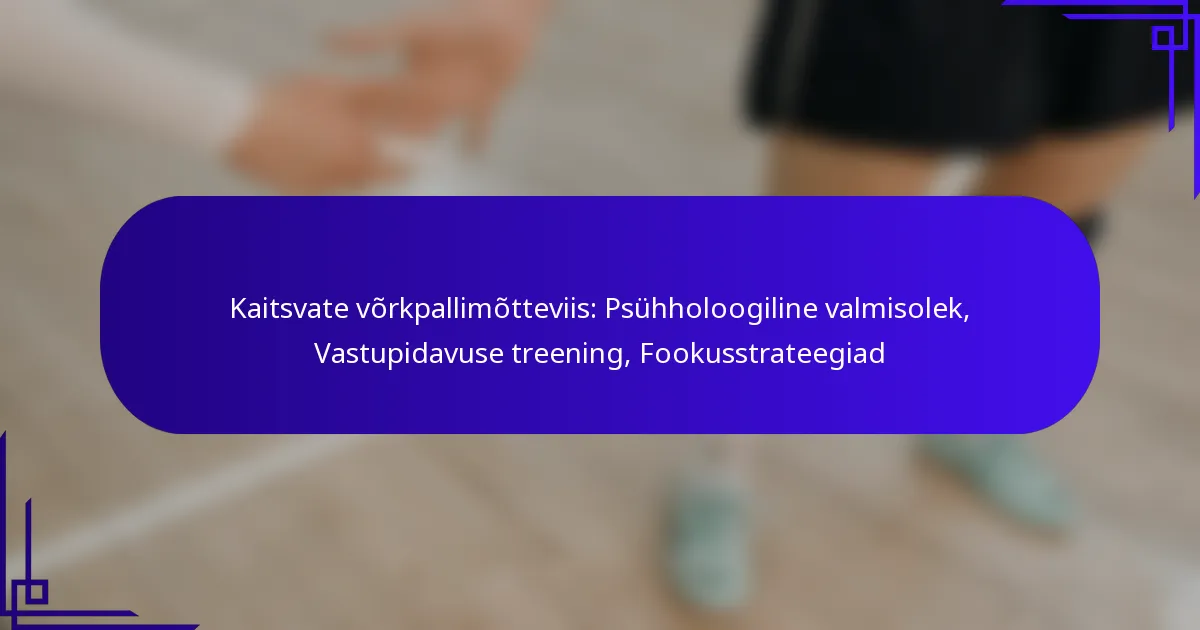 Psühholoogiline valmisolek kaitses võrkpallis hõlmab vaimset ettevalmistust tõhusaks sooritamiseks surve all. Seda valmisolekut saab arendada erinevate tehnikate kaudu, mis suurendavad keskendumist, vastupidavust ja enesekindlust mängude ajal.